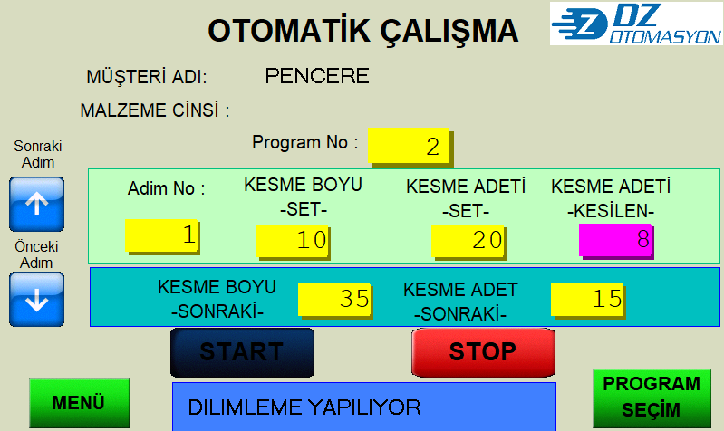 PVC ve Alüminyum profilleri istenilen ebatlarda ve açılarda tekrarlı bir şekidle girilen ölçülerde kesimi için kullanılır. Kullancının kesim ölçü ve adetlerini reçetelerde kayıt eder. Reçeteler teker teker çalıştığı gibi bütün reçeteler tek bir seferde de çalışabilir. Boy sürme işleminde pozisyonlama Asenkron motor ve hat enkoderi ile yapıldığı gibi müşterinin isteğine bağlı olarak Servo motorla da yapılmaktadır.